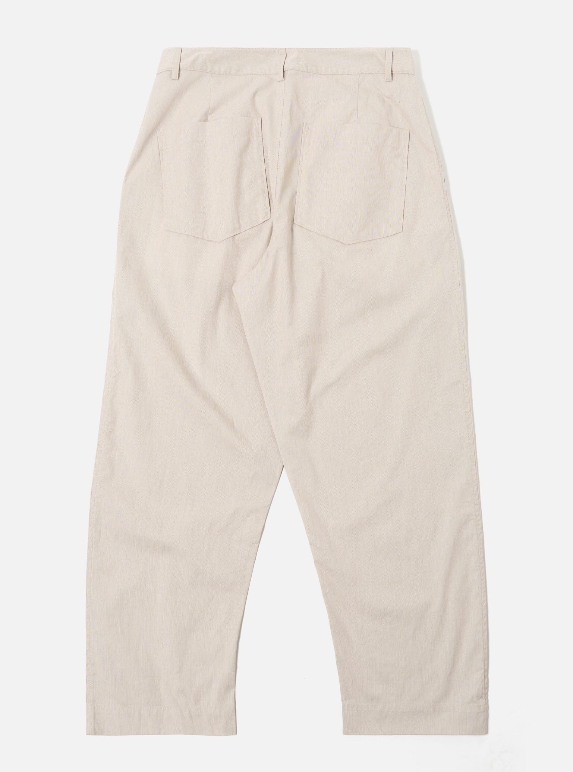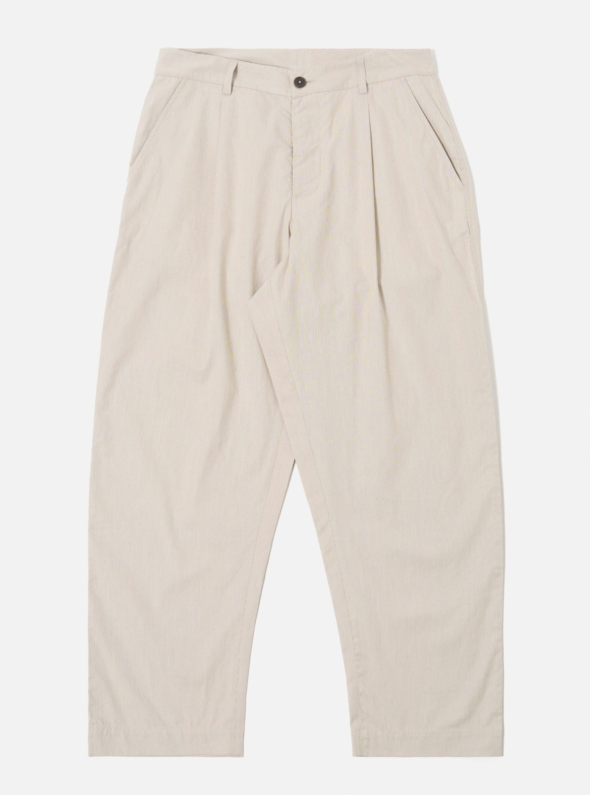 A wide-leg pant with slight taper. the Duke Pants have a single pleat front. a fixed waistband and two rear back pockets.