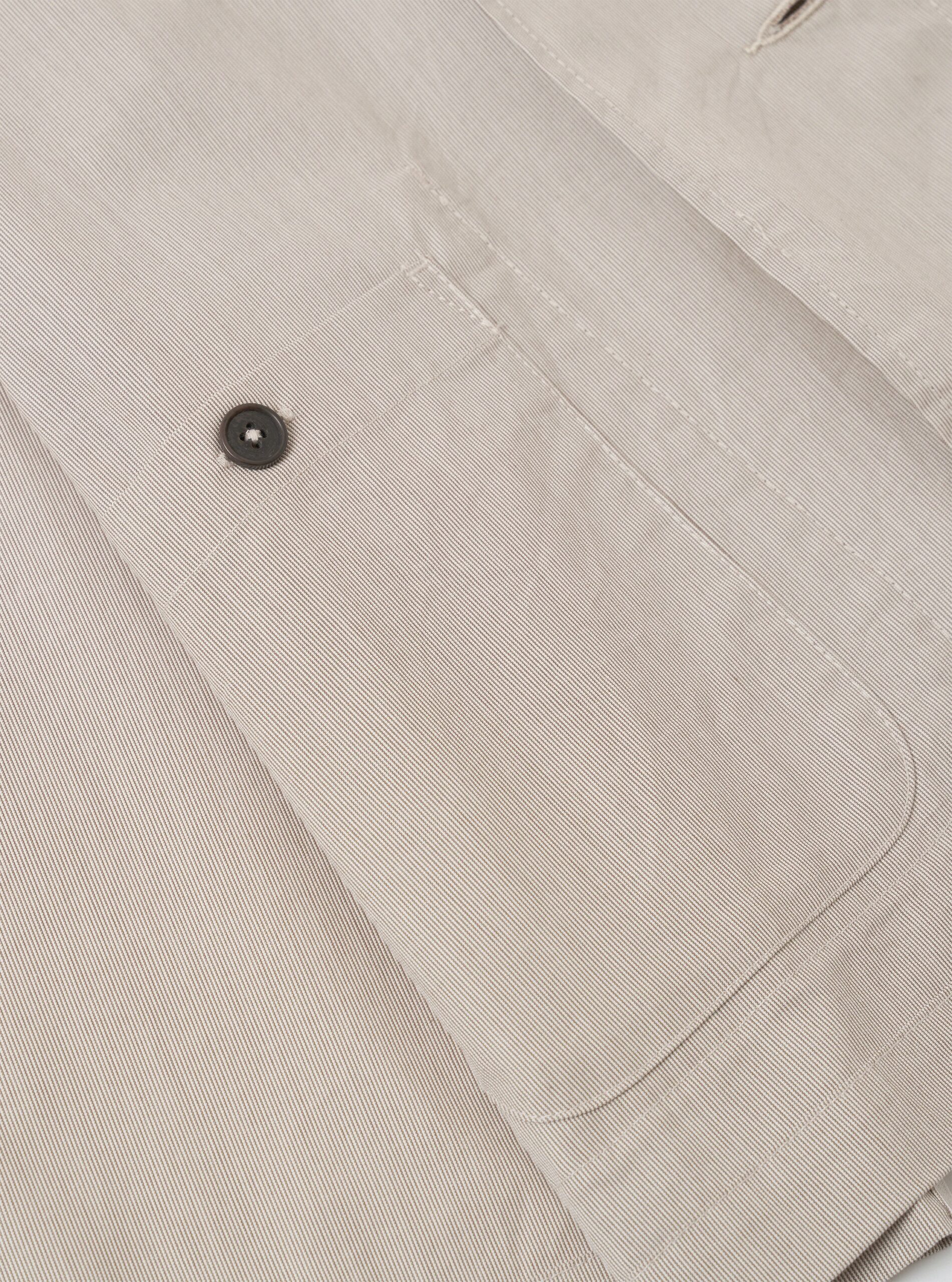 Three Button Jacket is a loose-fitting. unstructured jacket with three buttons and three patch pockets. It has a ‘dress up. dress down’ sport coat feel—a relaxed take on formal.