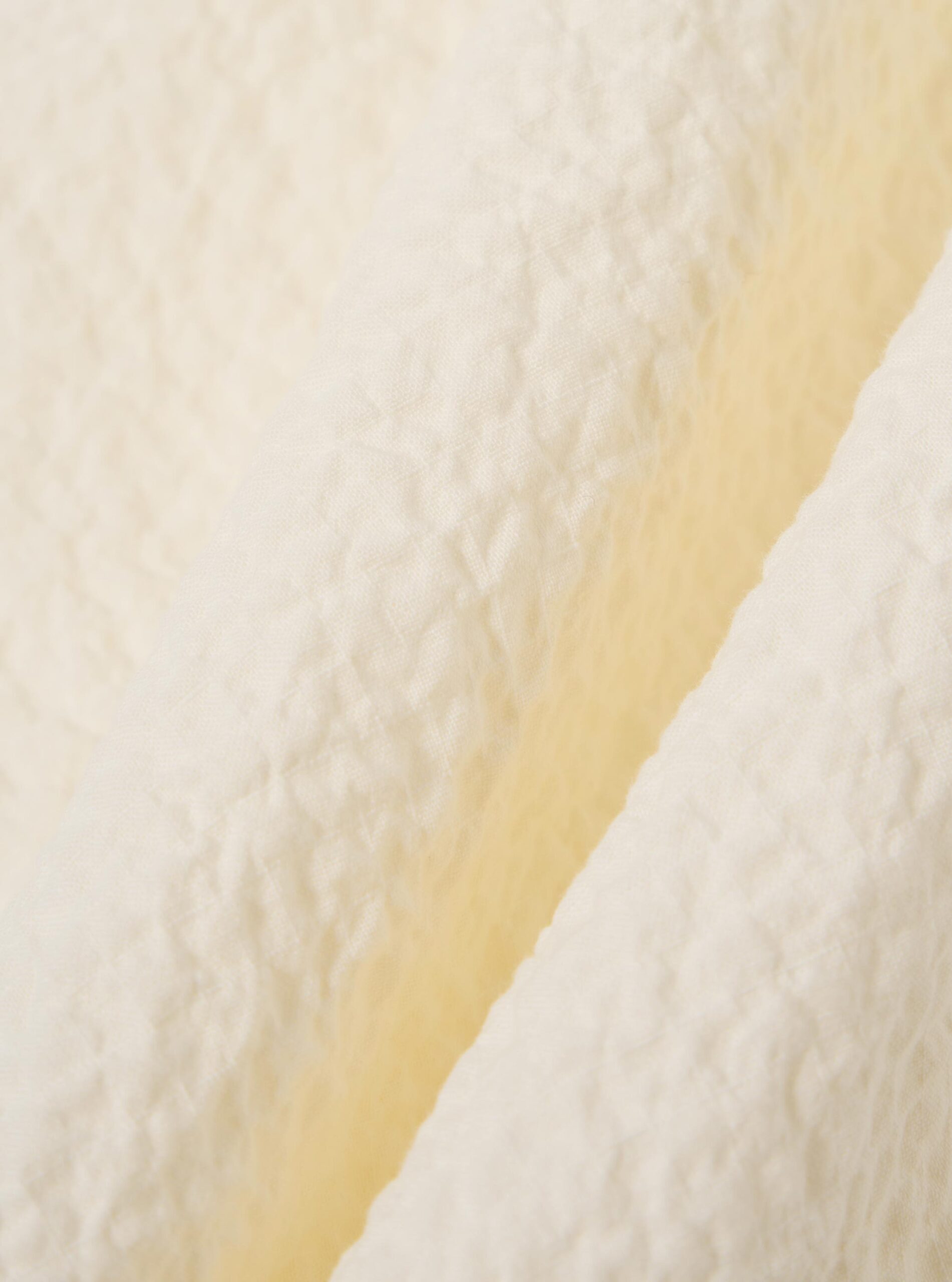A very lightweight seersucker woven like a ripstop (small squares) and washed to further enhance the texture.