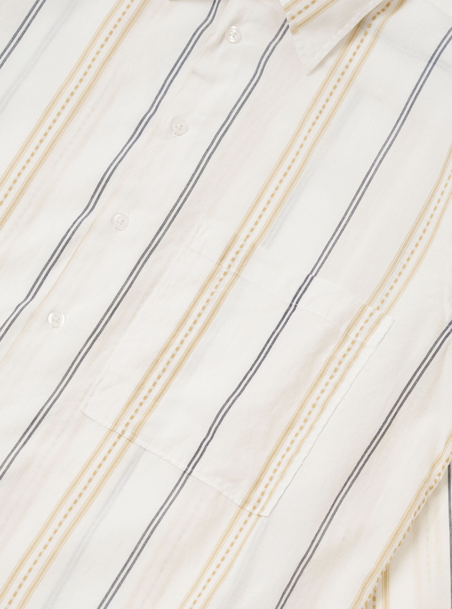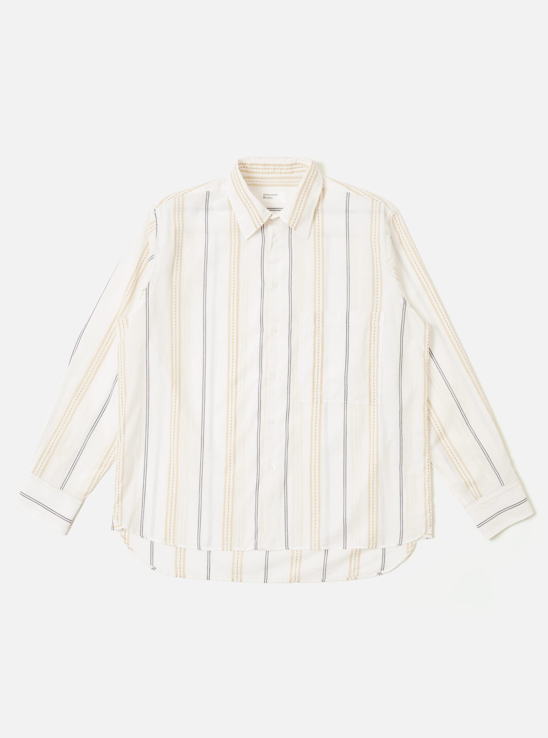 A very lightweight (our lightest weight shirting). loose weave shirting. The striping pattern and colourway is exclisive to us. Perfect for summer days and nights.