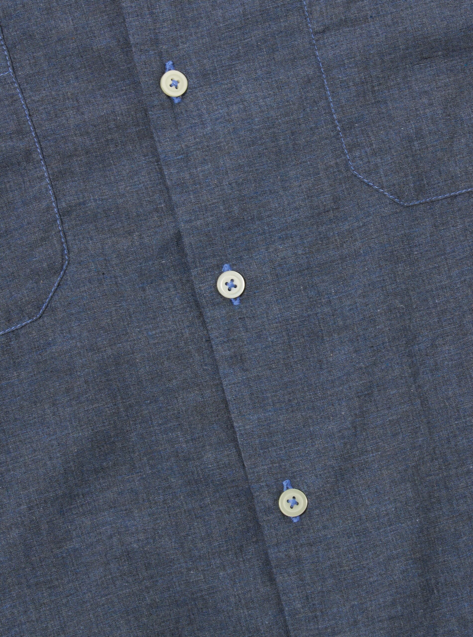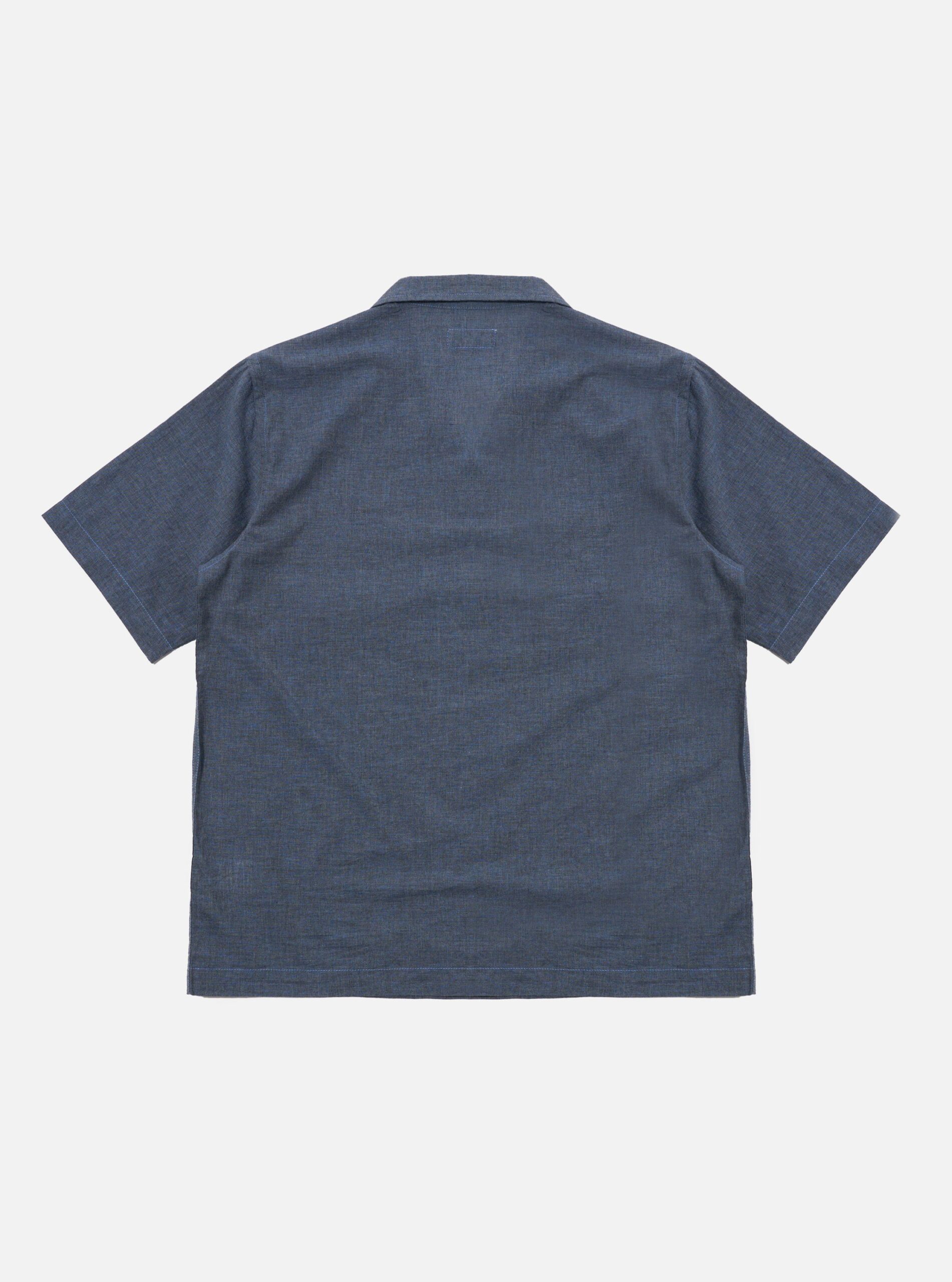 Sal Road Shirt is our regular fitting. straight hem. no-fuss short sleeve shirt but with 2 chest pockets instead of one. The one-piece collar is designed to be worn open-necked. but with the option to button up with a loop closure.