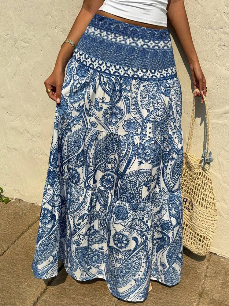 Women’s Amazon new vacation casual bohemian style printed half skirt long skirt